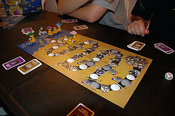 Nous avons fait une petite partie de Lemmings Mafia : chaque joueur à des objectifs secrets et doit faire avancer les lemmings mafieux aux mieux de leurs intérêts, jets de dés et cases à effets au programme. Un jeu léger mais amusant...