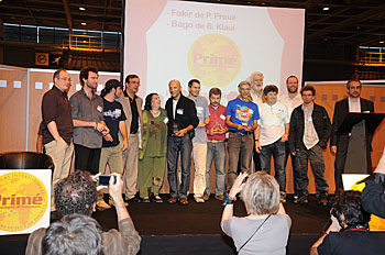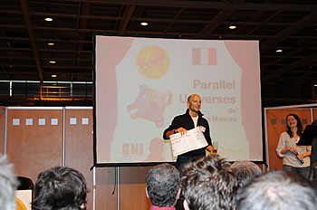Le dimanche après-midi, la cérémonie de remise des prix du concours de créateurs de Boulogne Billancourt s'est déroulée sur l'espace forum du Monde du Jeu. Les 10 finalistes ont été présentés puis les 4 primés ont été dévoilés. Le premier à recevoir le prix cette année était Philippe Proux pour Fakir, suivi de Bernhard Klauï et son Bago...