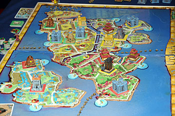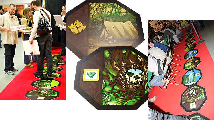 Sur le stand Matagot, on pouvait jouer à Utopia sur une version améliorée avec des figurines et des bâtiments joliment peints.