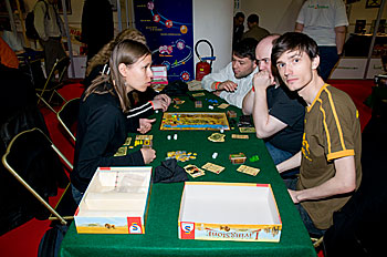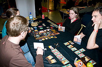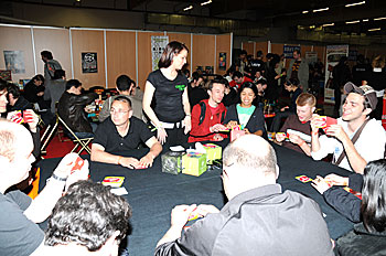 Pendant ce temps, sur le stand Repos Prod, de joueurs font des tas de trucs bizarres : Une partie de You Robot est en cours dirigée par Alain Rivollet.