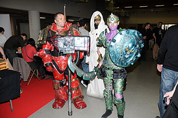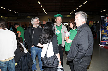 ...tandis que ça déconne dur entre (de gauche à droite) Mimi, Tibi (Nicolas de BoiteCast), Piérô, Thomas (Provoost), Cédric et Anne-C. Notez la ressemblance entre Tibi et Pierô. Tibi ferait en fait parfois la doublure, pour les cascades, de Pierô (bah oui ça peut être dangereux le métier d'illustrateur, il y a les crayons aiguisés, les poignets douloureux et tout ça ).
