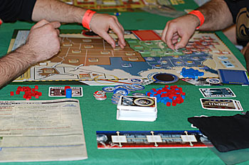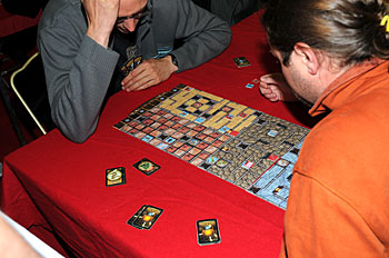 Toujours dans la catégorie protos, sur ce coin de table c'est une partie de Dungeon Twister 2 qui est en cours.