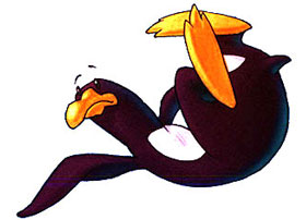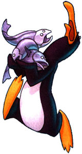 Le propos de Pingouin, c'est de mettre le joueur à la tête d'une escouade de ces fameux Alcidés, avec pour mission une chasse au poisson sur fond de blocs de glace glissants.