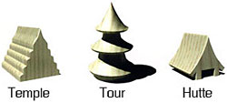 - Construire un Temple : Le Temple peut être placé sur un terrain adjacent à une colonie existante composée d'au moins trois terrains, sans contrainte de hauteur. On ne peut placer qu'un Temple par colonie.