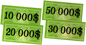 Un pion racket (billet de 10000, 20000, 30000 ou 50000$ est placé à chaque extrémité de rue (horizontalement et verticalement).