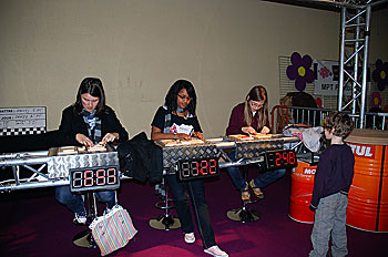 De jeunes joueuses qui s'affrontent sur une épreuve chronométrée de casse tête avec des pièces de type "tétris".