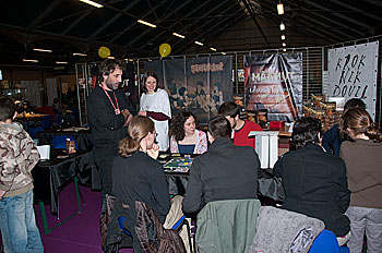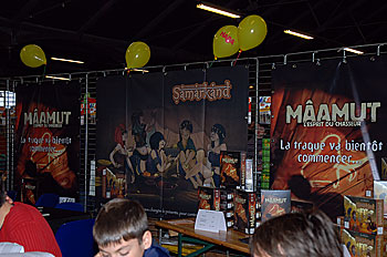 Sur le stand de Krok Nik Douil, Alain Epron était présent pour expliquer Mâamut et Samarkand, les 2 premiers jeux édités par sa jeune maison d'édition...