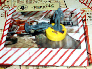 Je tente un dernier sprint inutile qui amène ma pin-up au parking, parking où elle aurait atterri de toutes manières. Le premier joueur c'est Stef et en déplaçant son gros bras, elle vient prendre la dernière place disponible au Mégatoys, du coup Mimi et moi n'avons pas le choix, nous avons programmé Le Mégatoys et attérrissons donc au parking tous les 2...